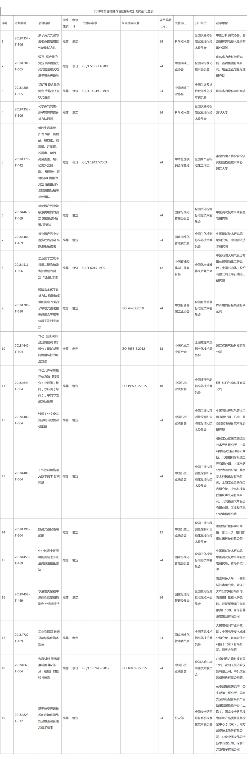 2018年12月25日,國家標準化管理委員會發布了2018年第四批推薦性國家標準計劃,其中有多項涉及儀器儀表分析檢測標準。