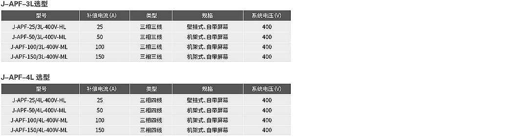 ? 選型表