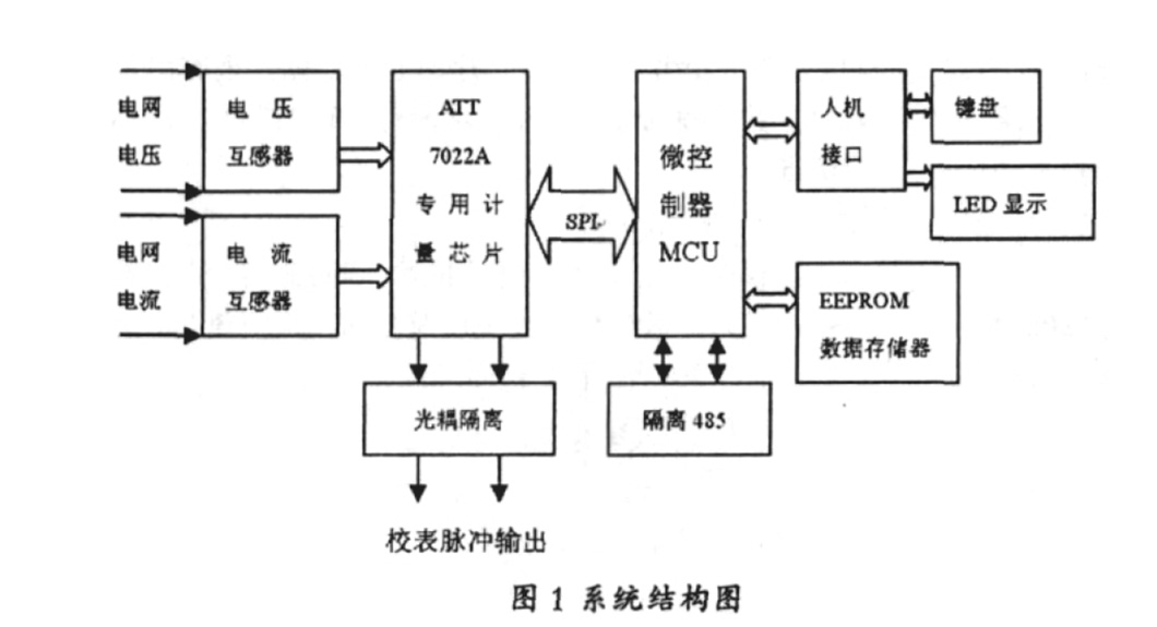 電力監控儀表主要包括電能計量和電力參數監控兩部分, 常規的A/D+MCU 的硬件實現方案開發難度較大, 軟件算法比較復雜, 硬件成本較高[3]。而基于ATT7022A 專用電能計量芯片的電力監控儀表有測量電網參數準確度高、硬件成本較低、開發難度相對小等優點。